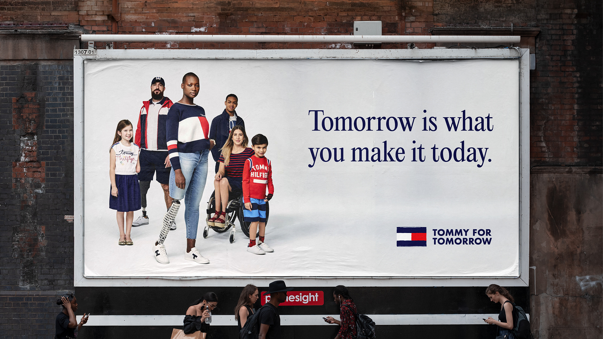 Tommy Hilfiger introduces 'Tommy For Tomorrow,' an initiative focused on a sustainable and inclusive future. It emphasizes eco-friendly practices like material reuse and waste reduction, ensuring products, services, and communications are accessible to all. The visual identity features a dynamic logo in motion with five unique takes on the iconic Tommy flag, each handmade to celebrate inclusivity and sustainability. A static version combines elements from these designs. Futura Extra Bold, part of the brand guidelines, creates a strong text block next to the flag, while Editorial New adds modern, elegant headlines. The campaign features the trusted Tommy Blue and the freshly added Pop Art Red. The slogan "Tomorrow is what you make it today" encourages proactive and conscious choices, setting new standards for responsibility and representation in fashion.